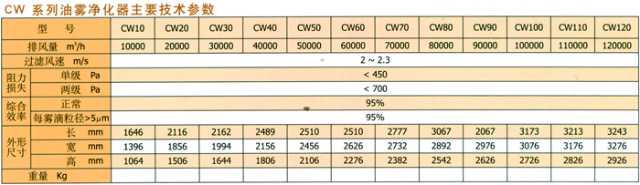 CW系列油霧凈化器是消除并回收排氣中的油霧、水霧和煙霧,改善工作條件,減少大氣污染的環境保護設備,主要用于有色金屬加工、化工、機械加工、飲食等行業中,作為排氣系統的除油煙設備。